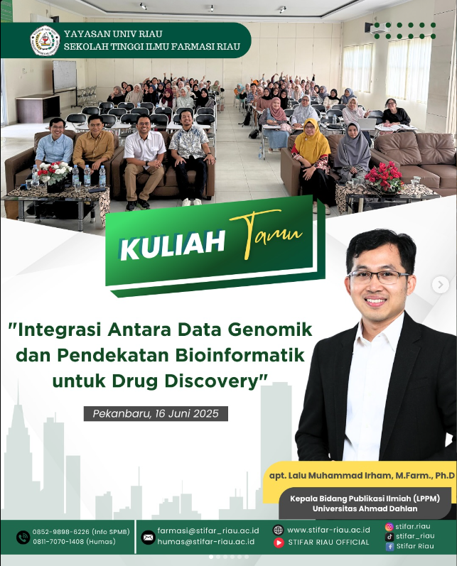 Kami mengucapkan terima kasih kepada apt. Lalu Muhammad Irham, M.Farm., Ph.D selaku Kepala Bidang Publikasi Ilmiah (LPPM) Universitas Ahmad Dahlan atas pemaparan luar biasa.
