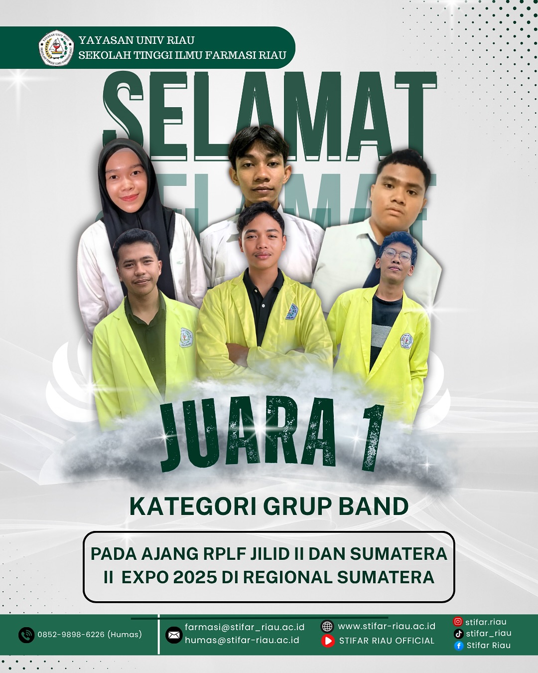 UKM Seni STIFAR Riau berhasil menyabet Juara 1 Kategori Grup Band pada ajang RPLF Jilid II dan Sumatera II Expo 2025 Regional Sumatera.