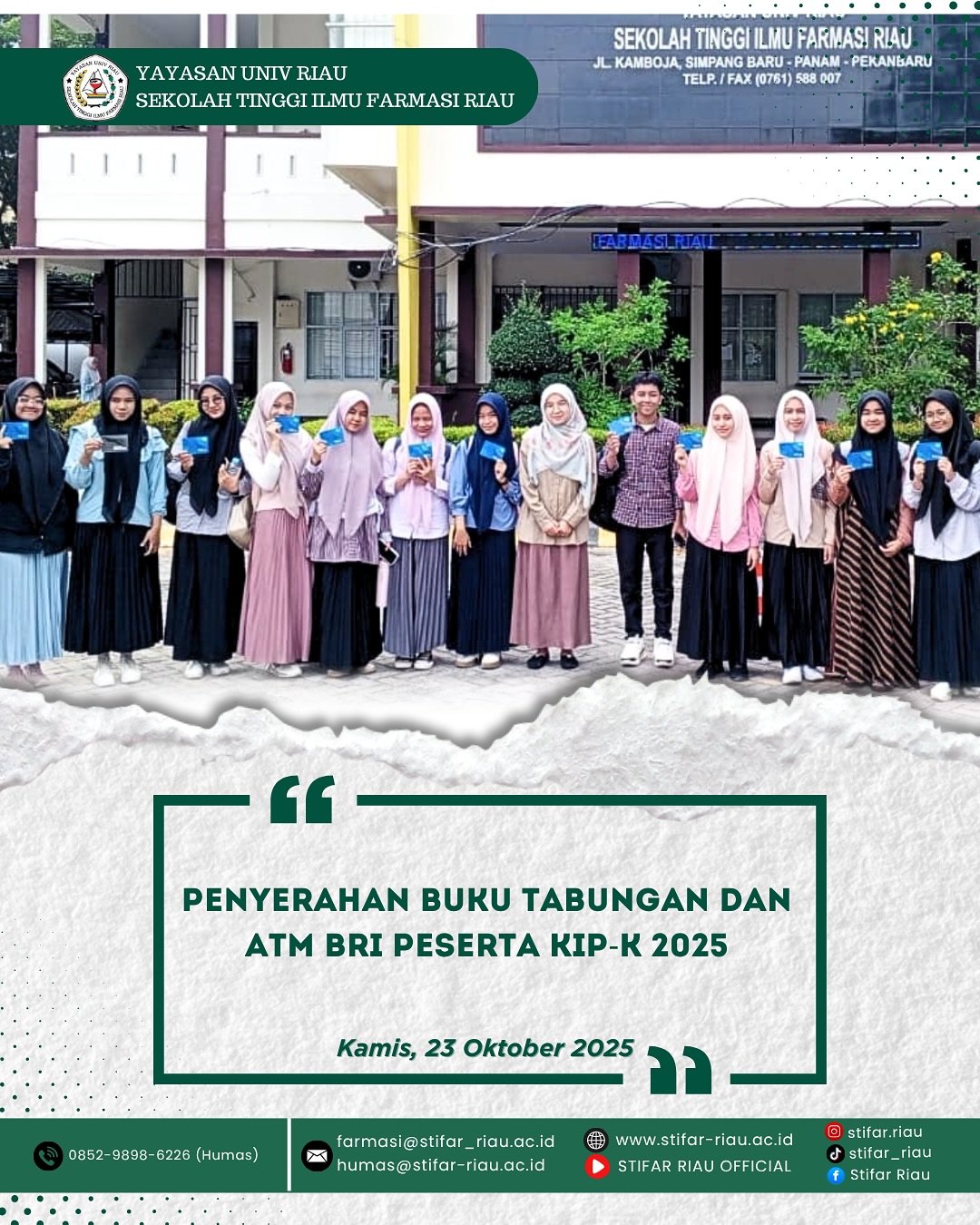 STIFAR Riau menyerahkan secara simbolis buku tabungan dan ATM BRI kepada para penerima KIP-K Tahun 2025. Program ini merupakan bentuk dukungan nyata bagi mahasiswa.