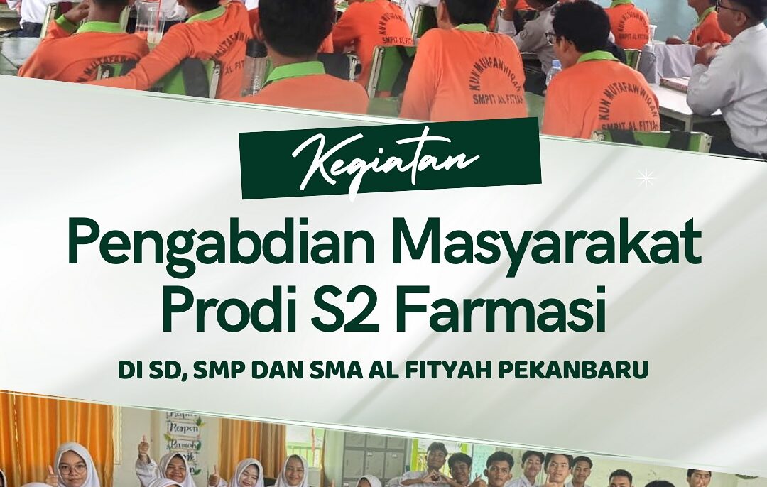 Sebagai wujud pelaksanaan Tri Dharma Perguruan Tinggi, Program Studi S2 Farmasi STIFAR Riau melaksanakan kegiatan Pengabdian kepada Masyarakat di SD, SMP, dan SMA Al Fityah Pekanbaru 🤝📖